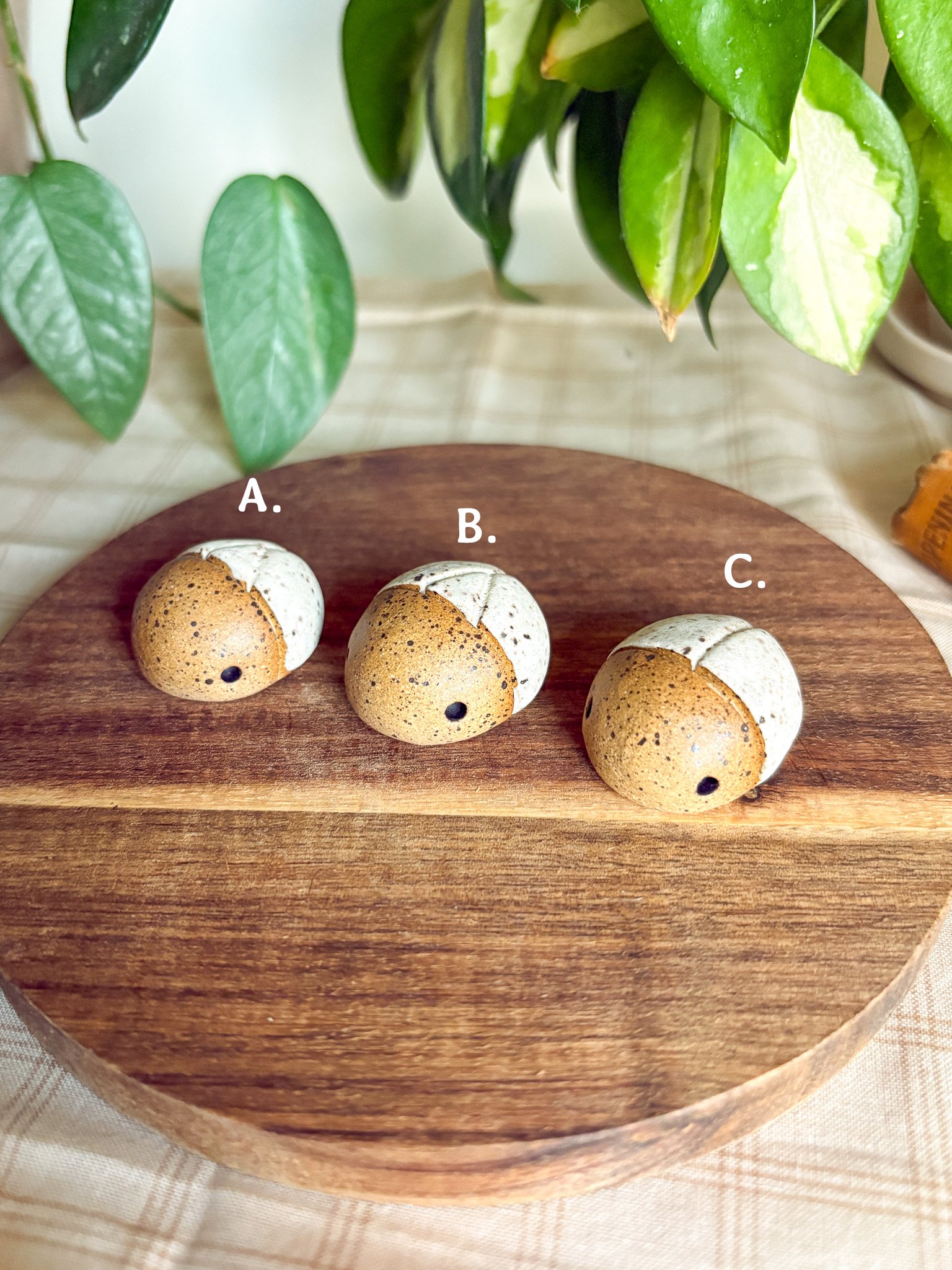 Little beetle sculptures perfect for decorating your plant pots and shelves, or just to carry around on adventures! Made from brown speckled clay and glazed with Coyote's Creamy Matt w/ Specks glaze.
